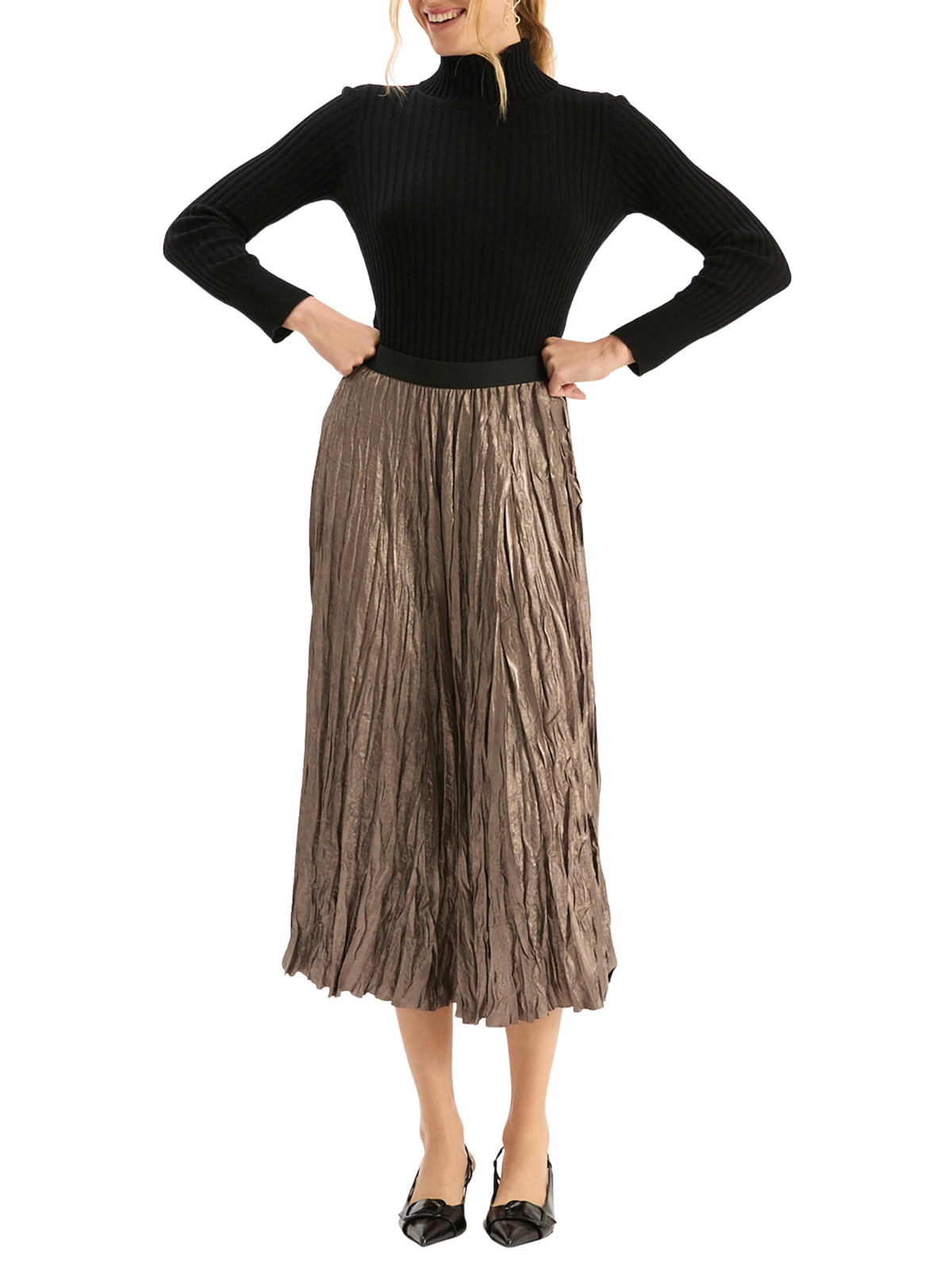 Cara Metallic Pleat Skirt