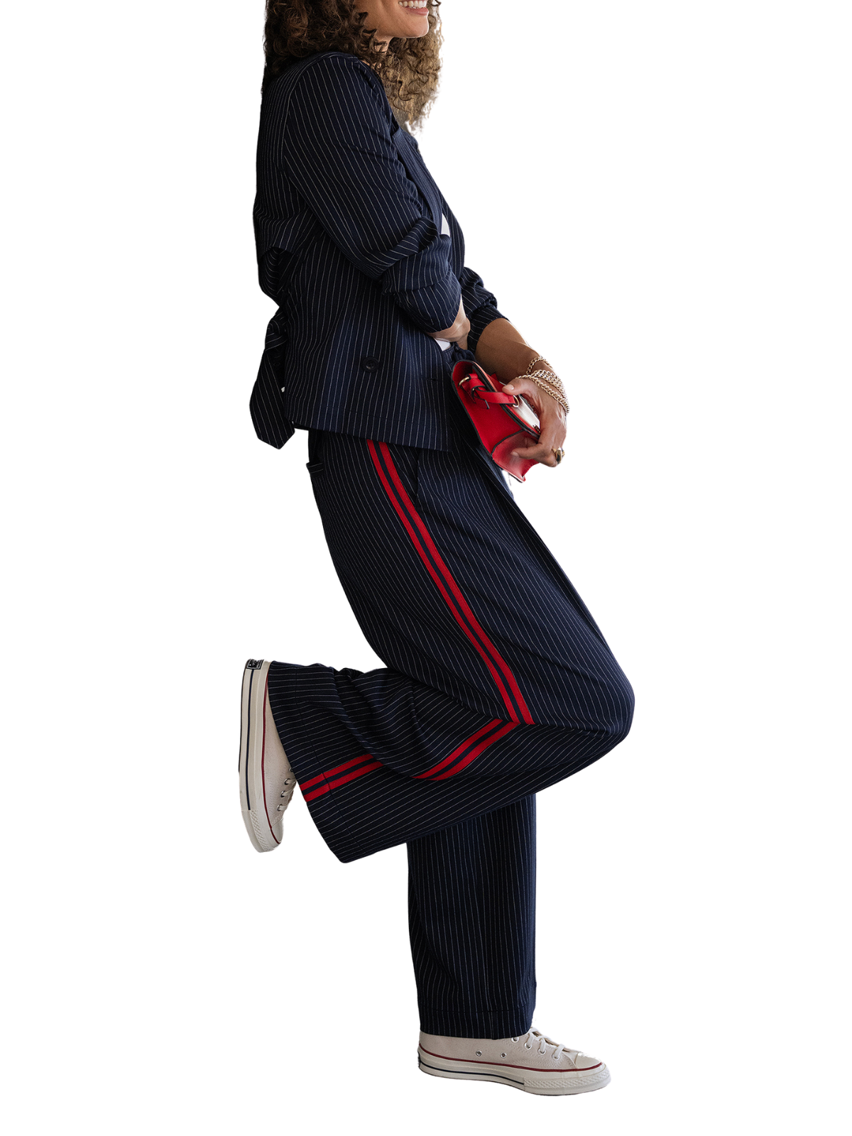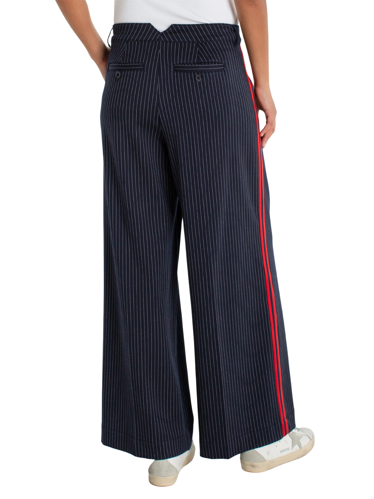 Wide Leg Pleated Trouser with Side Stripe